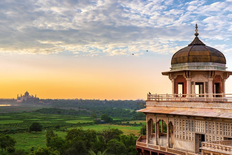 A tu llegada a Agra, tu conductor privado te dará la bienvenida en la estación o aeropuerto. Comienza tu exploración con la joya del viaje: el Taj Mahal, el monumento más icónico de la India. Admira su belleza blanca de mármol mientras aprendes sobre su historia romántica. Después, dirígete al imponente Fuerte de Agra, una fortaleza mogol que combina poder militar con elegancia arquitectónica. Por la tarde, visita la tumba de Itmad-ud-Daulah, también conocida como el "Bebé Taj". Finaliza el día en el Mehtab Bagh, desde donde disfrutarás de una hermosa vista al atardecer del Taj Mahal. Alojamiento en Agra.